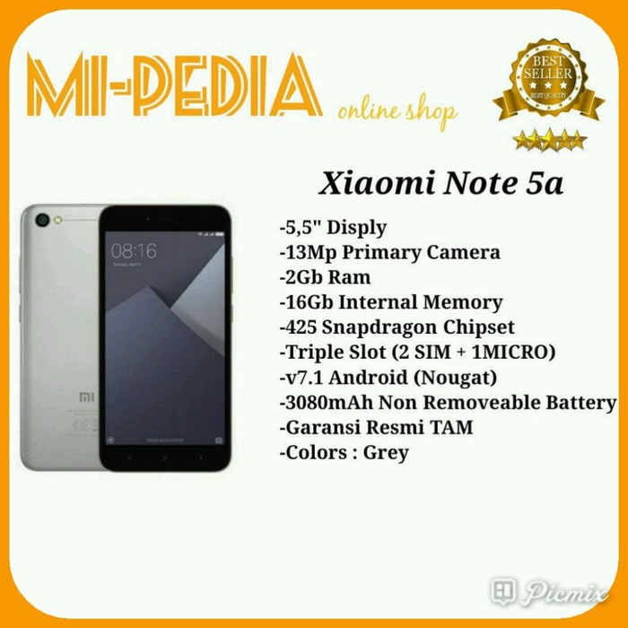 Produk Xiaomi Redmi Note 5A Ram 2 Internal 16Gb Garansi 1 Tahun - Abu-Abu Muda kami rating di nomor ke- 472 untuk pencarian [ Fashion ].