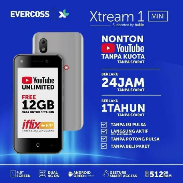 Penawaran MenarikEVERCOSS XTREAM MINI 4G Free Youtube sayang jika tidak diambil