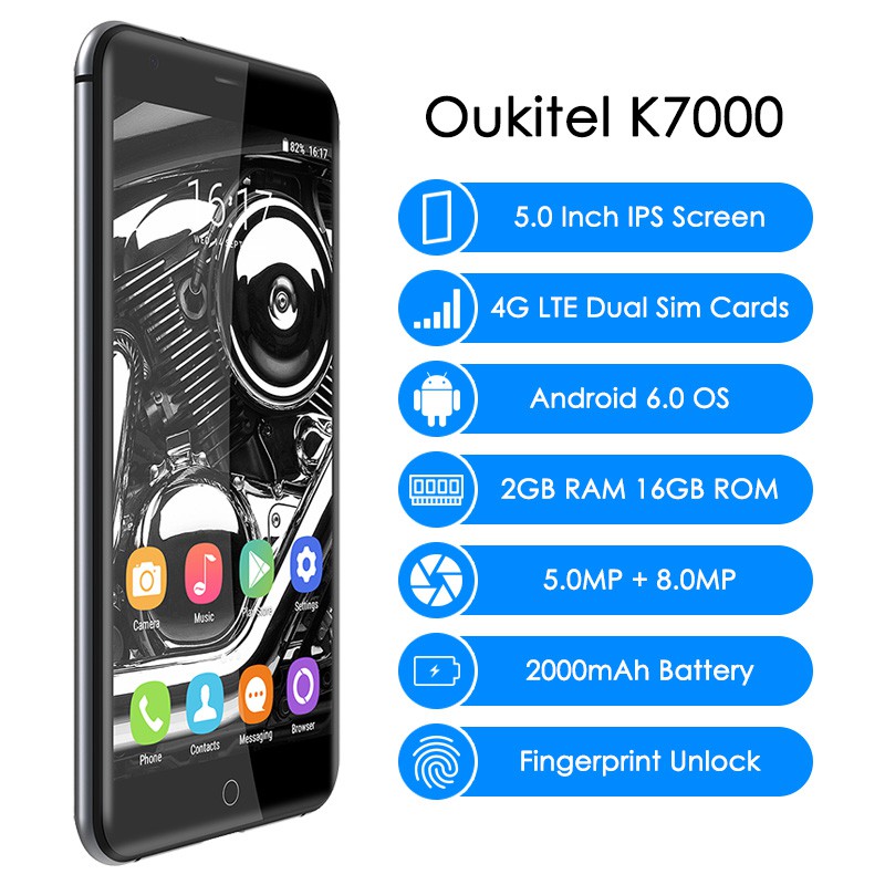 Foto - Foto Produk Dalam Stok Oukitel K7000 4G LTE Smartphone Sim Ganda 5 Inch MT6737 Sidik Jari Ponsel Quad Core 2G +